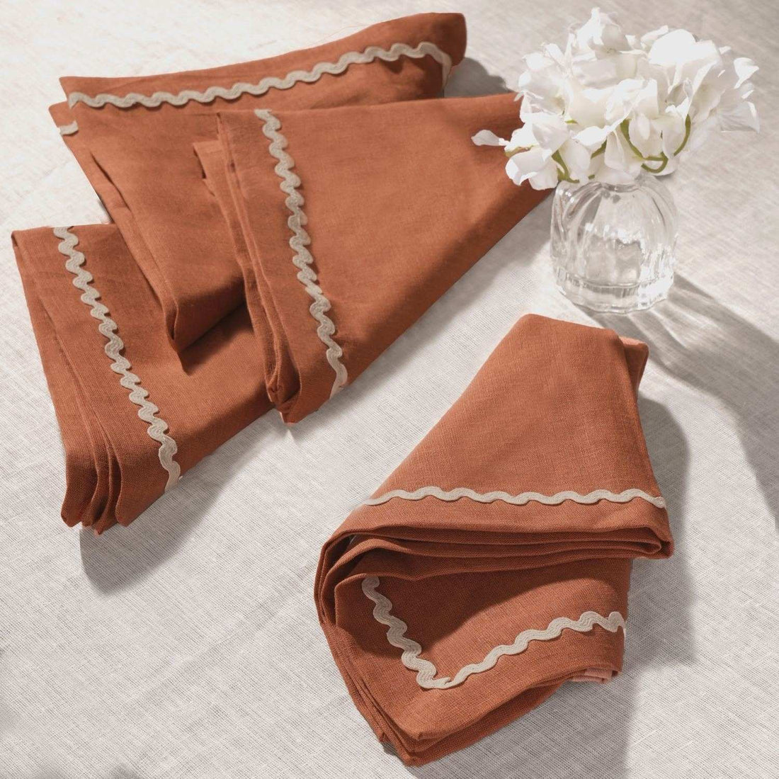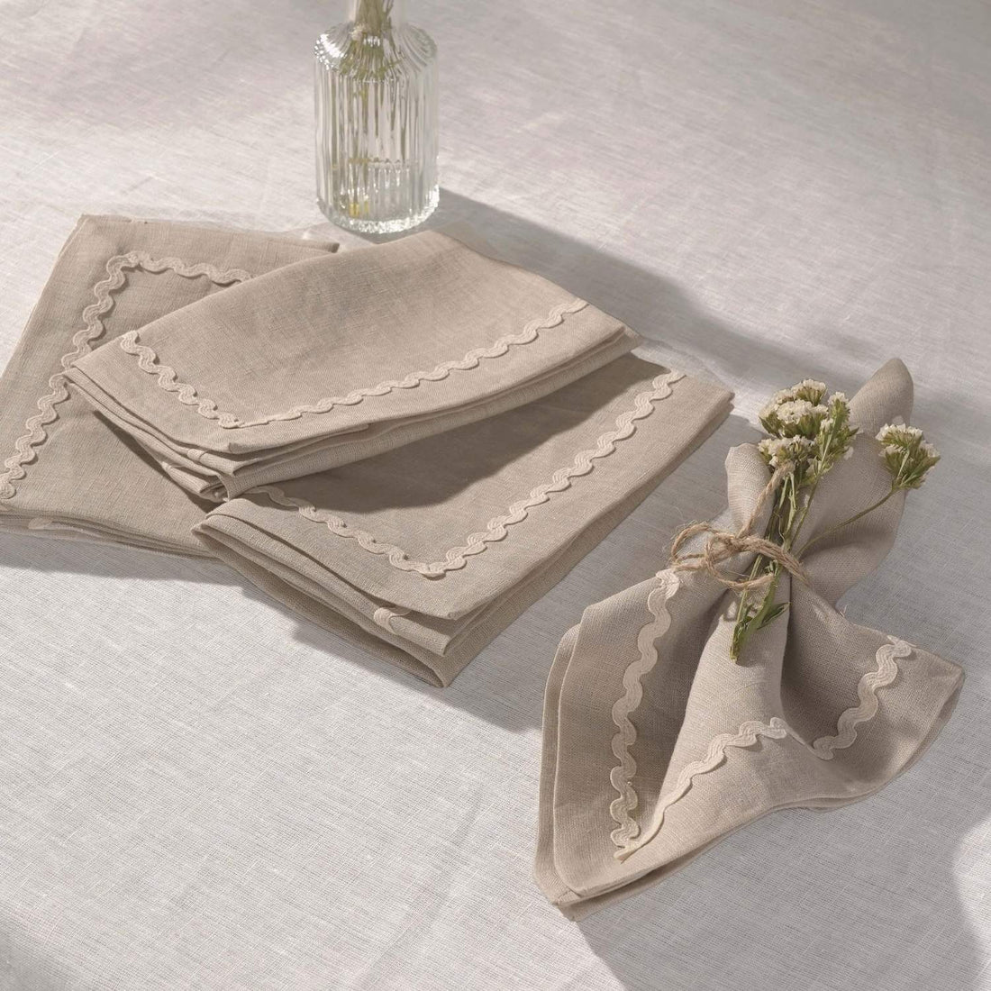 Achieve that effortlessly chic, sun-drenched look with our white linen napkins featuring delicate rick rack...