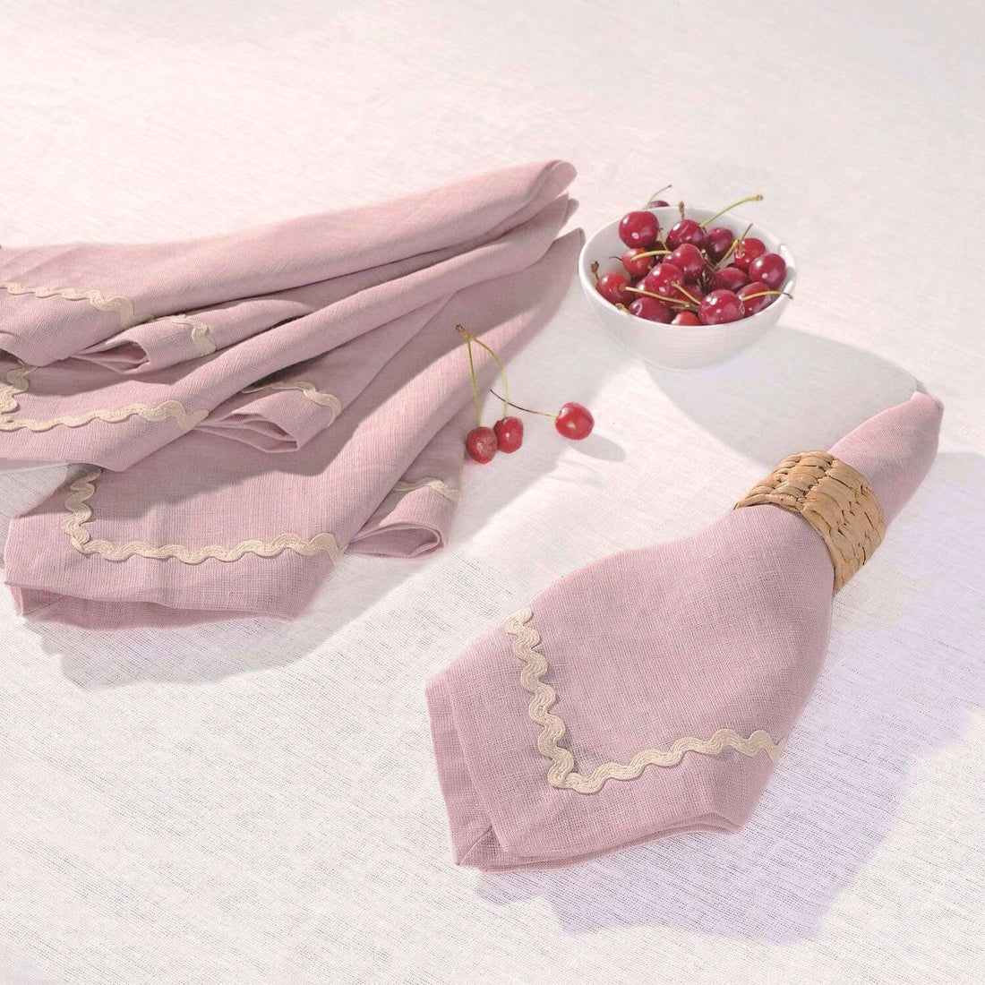 Dusty Rose Rick Rack Lace 100% Linen Napkins