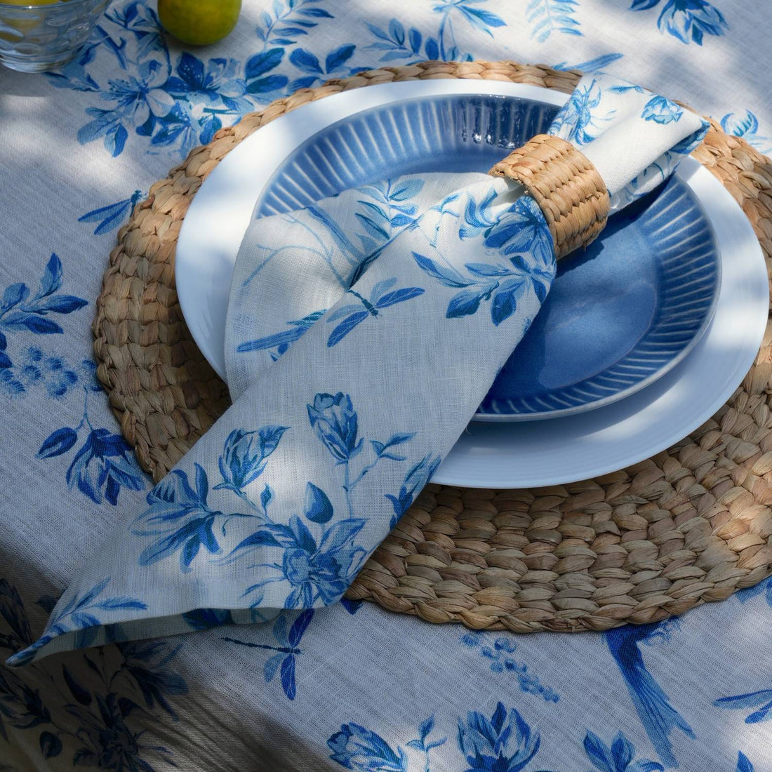Transport your dining experience to a quaint Provençal cottage with our exquisite French Toile linen...