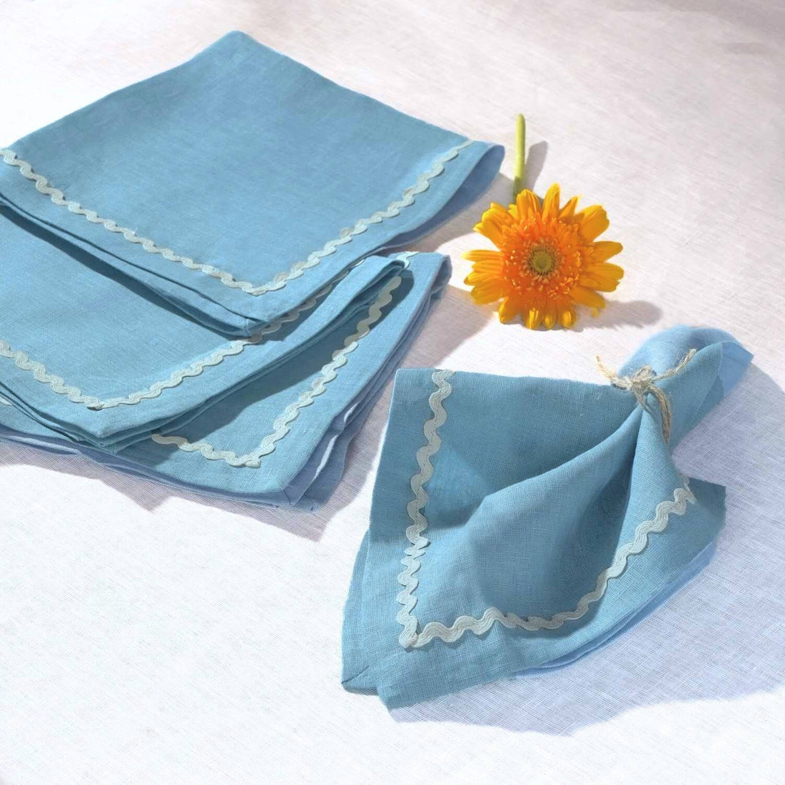 Dusty Blue Rick Rack Lace 100% Linen Napkins