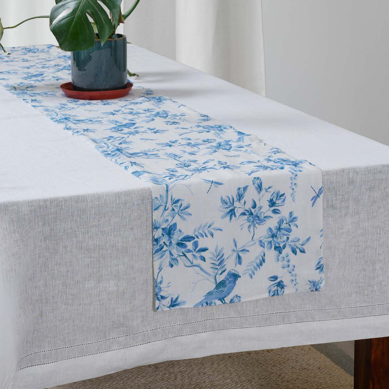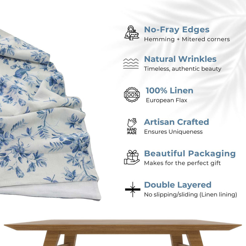 Immerse your dining space in the charm of a French chateau with our blue toile print linen runners. These exquisite pieces feature classic pastoral scenes that tell a story with every use. Imagine hosting elegant soirées or casual brunches, with guests admiring the intricate blue and white patterns that evoke timeless sophistication. Transform your table into a canvas of vintage-inspired beauty that sparks conversation and admiration.