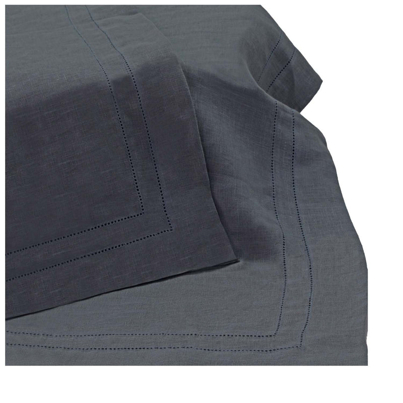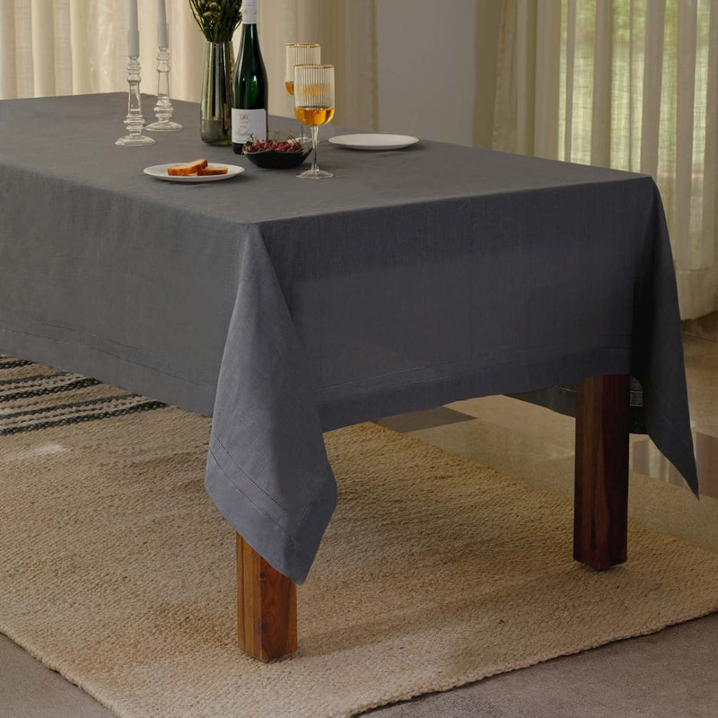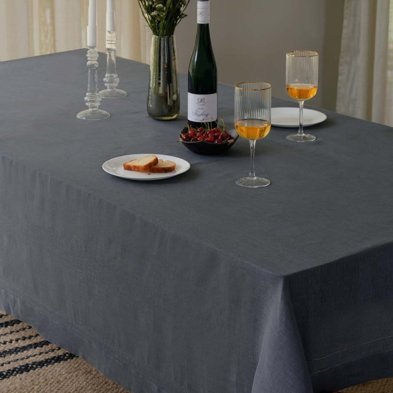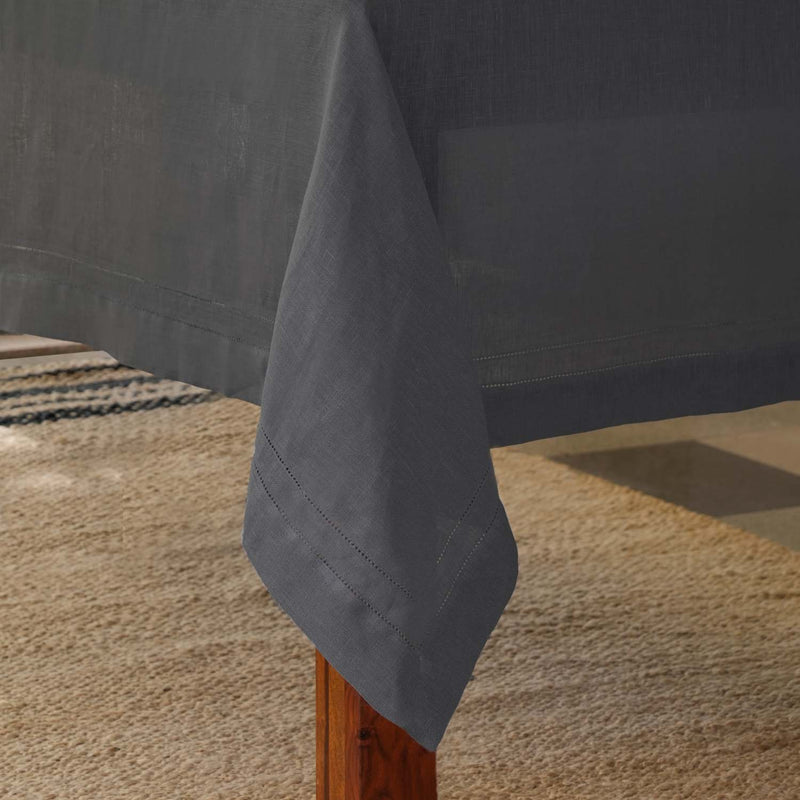 Charcoal Gray 100% Linen Double Hemstitch Rectangular Tablecloth