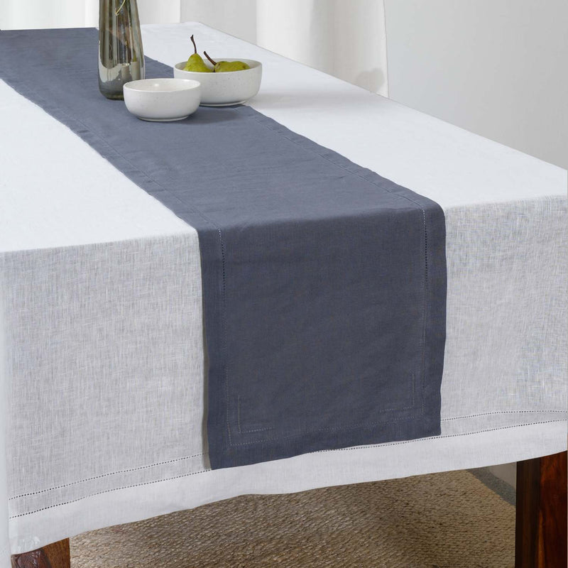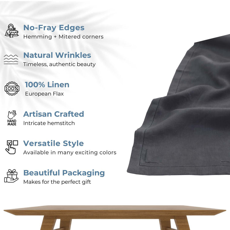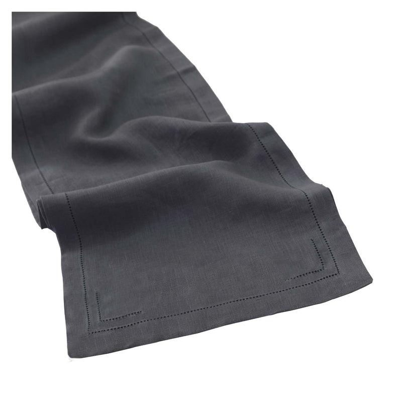 Charcoal Gray 100% Linen Incomplete Hemstitch Table Runner 72"