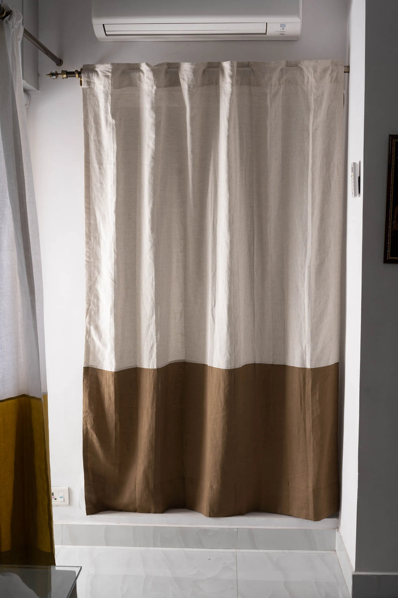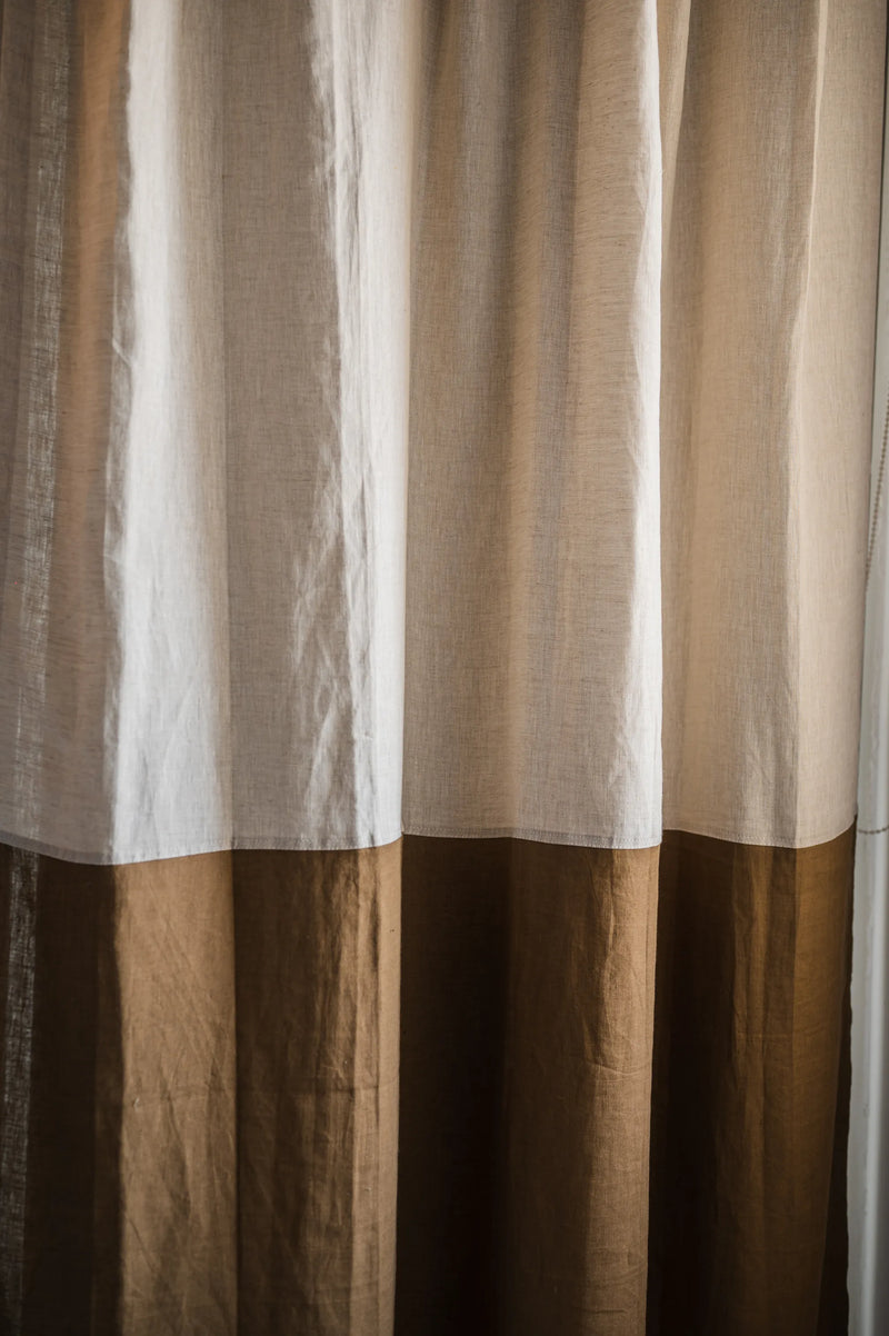Color-Blocked Natural Brown Linen Curtains | BlueFlowerCo