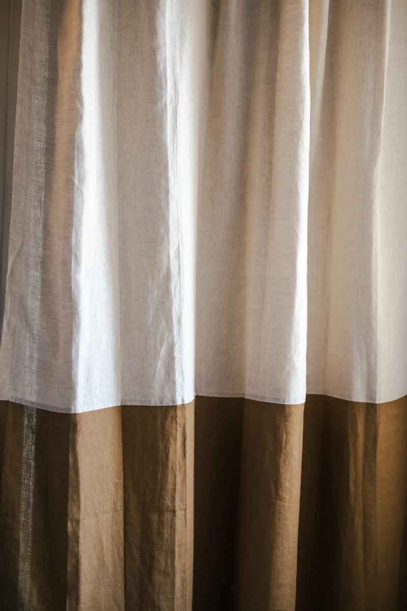 Color-Blocked Natural Brown Linen Curtains | BlueFlowerCo