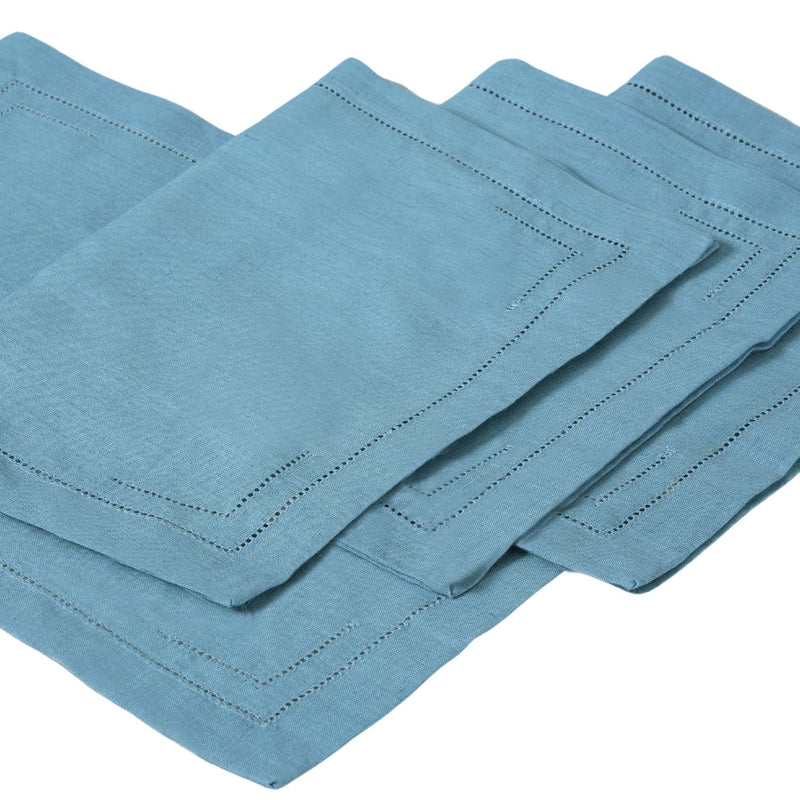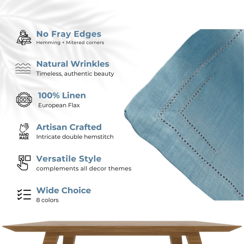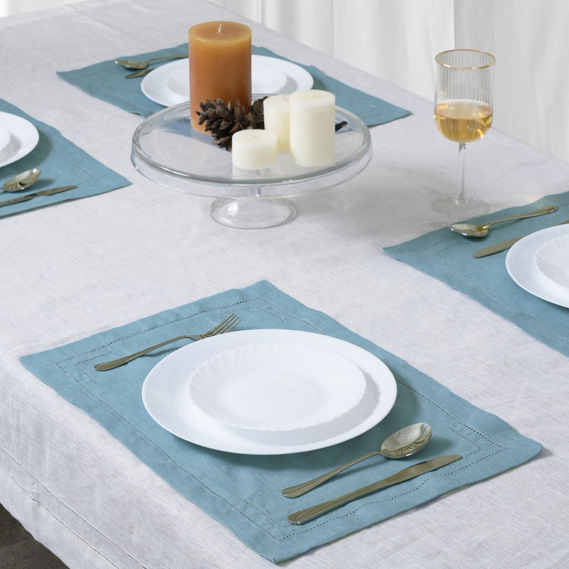 Dusty Blue 100% Linen Incomplete Hemstitch Placemats