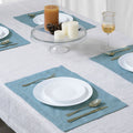 Bring the relaxed essence of coastal living to your table with our dusty blue linen placemats. These breezy pieces infuse your dining area with seaside charm, no ocean view required. Close your eyes and listen - can you hear the waves? The gentle, muted blue tone mimics the calming hues of sky and sea, bringing a sense of vacation-like relaxation to your everyday meals. Transform any dining experience into your personal beachside retreat.