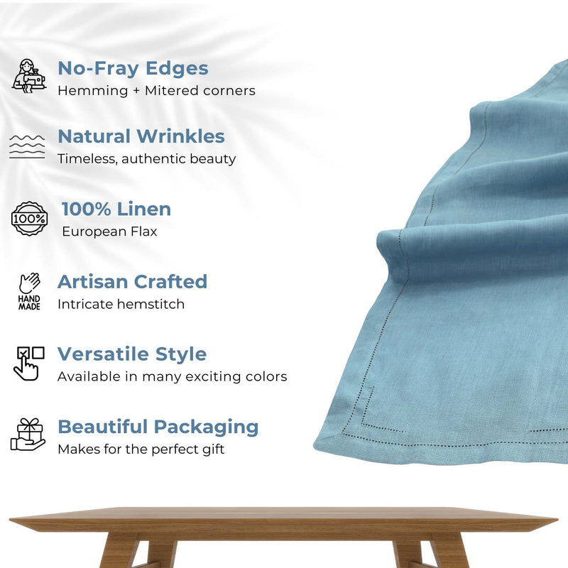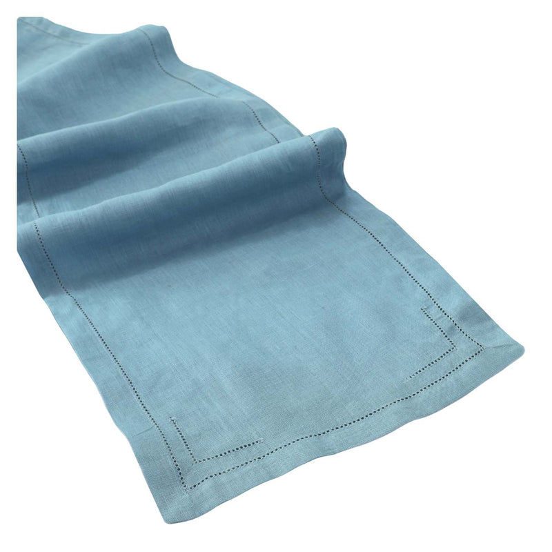 Dusty Blue 100% Linen Incomplete Hemstitch Table Runner 72"