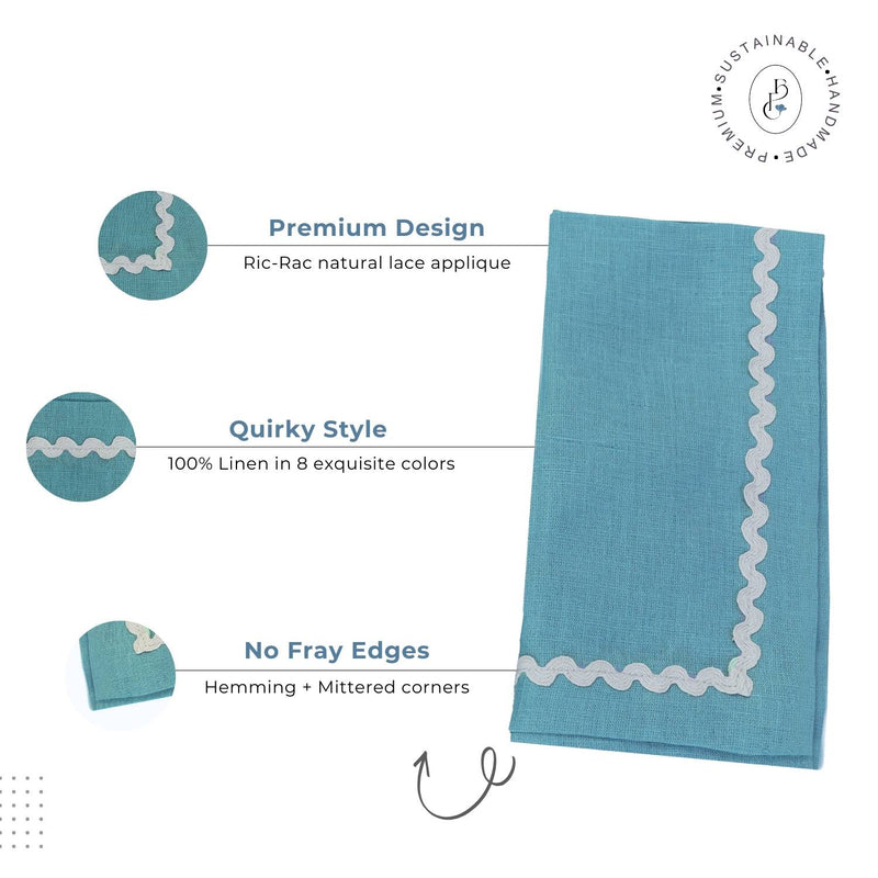 Dusty Blue Rick Rack Lace 100% Linen Napkins