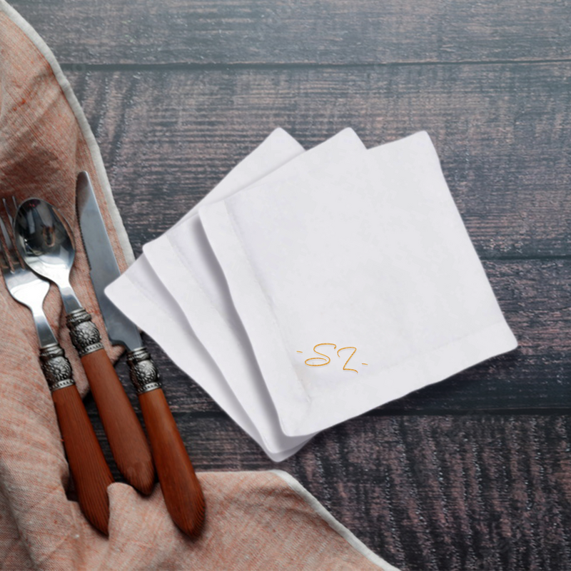 Add a Personal Touch with Our Embroidered Linen Napkins.