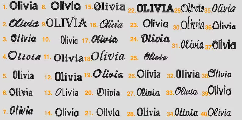 Personalized Embroidery: We use the Charlotte font for wirting the name. Please specify the name/initials for embroidery.