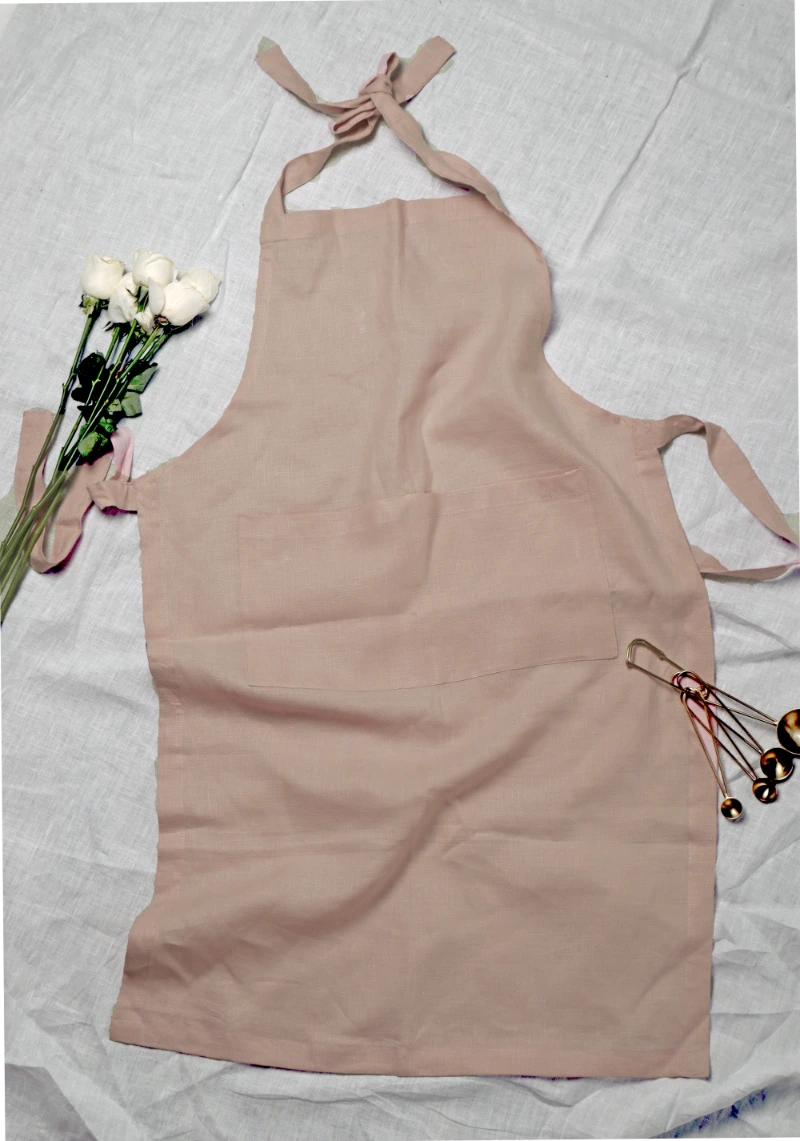 Indulge in the sophistication of 100% pure linen, meticulously crafted into a soft pink apron by our esteemed artisans. This piece seamlessly marries style with functionality, transforming every culinary space into a serene oasis.