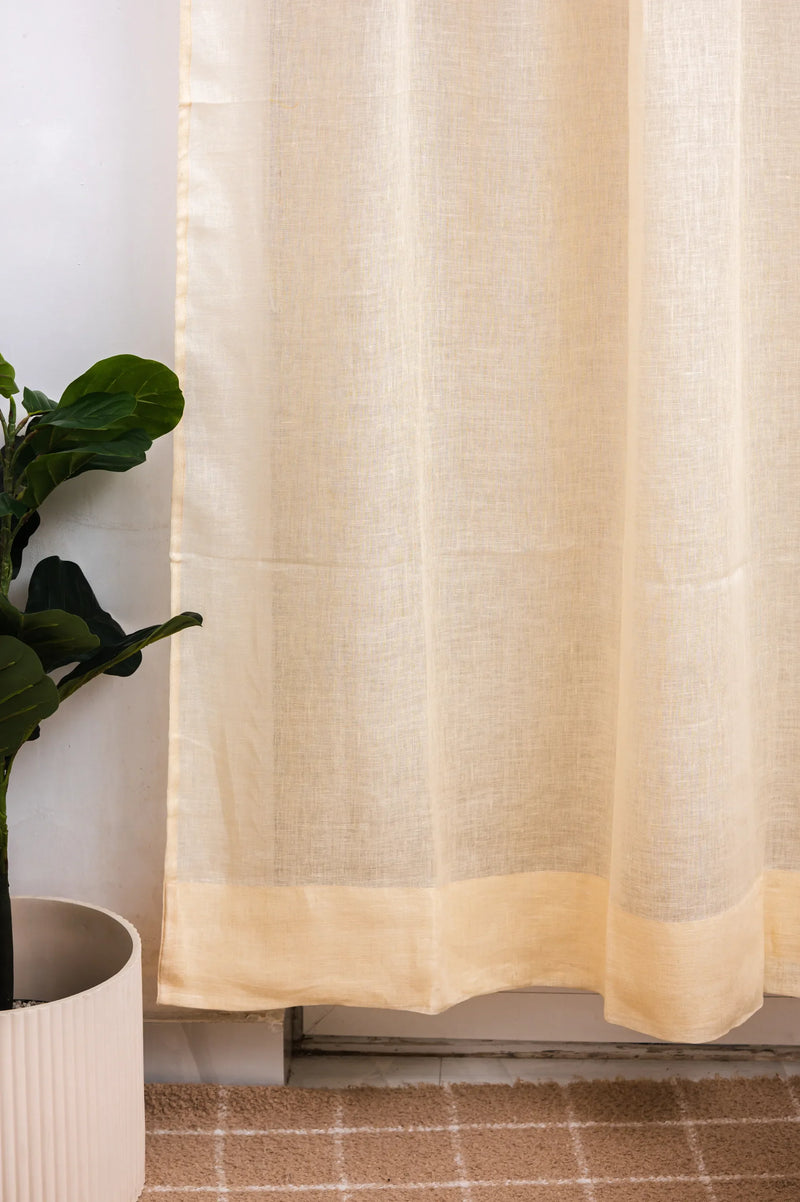 Handcrafted from 100% premium linen in the trending butter yellow hue, these sheer curtains capture the essence of accessible luxury while delivering the mood-enhancing benefits that yellow brings to modern interiors. The inherent properties of natural linen create a light, airy texture that tenderly filters daylight, fostering an atmosphere of warmth and cheerful tranquillity.
