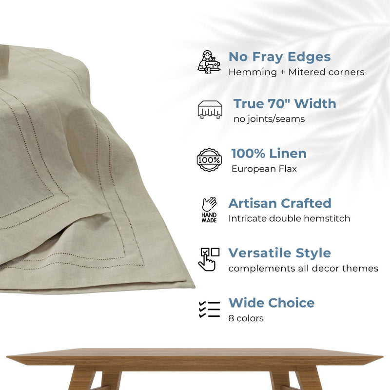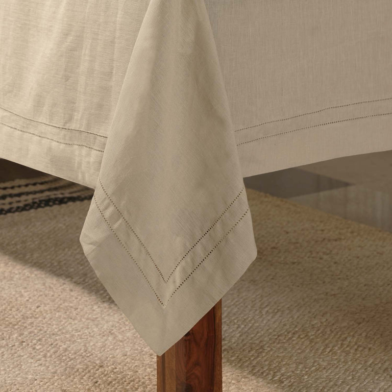 Natural 100% Linen Double Hemstitch Rectangular Tablecloth
