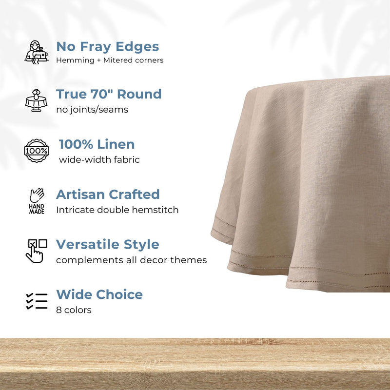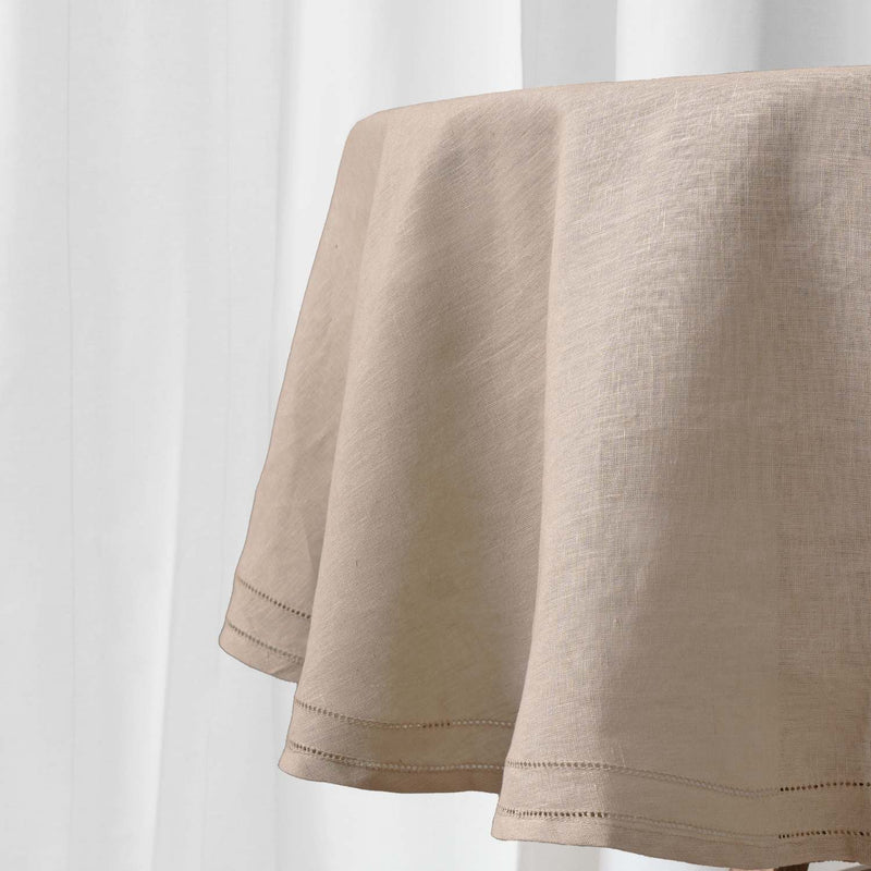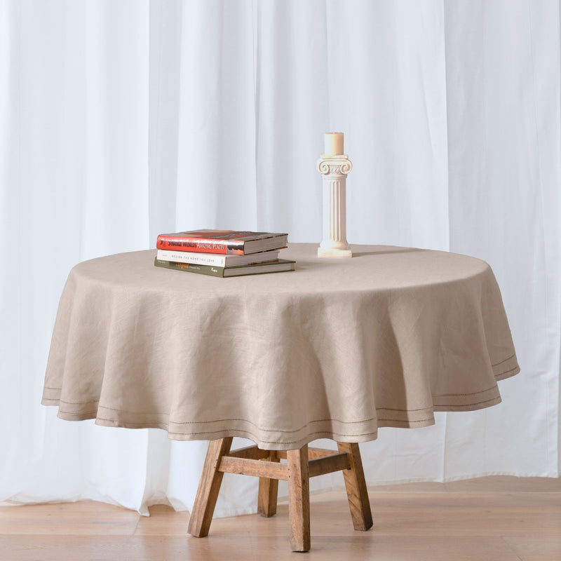 Natural 100% Linen Double Hemstitch Round Tablecloth