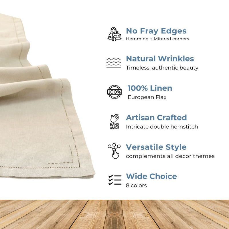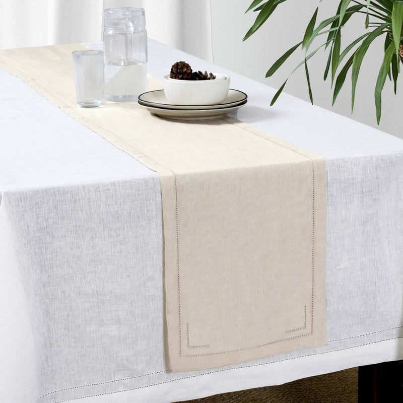 Natural 100% Linen Incomplete Hemstitch Table Runner 72"
