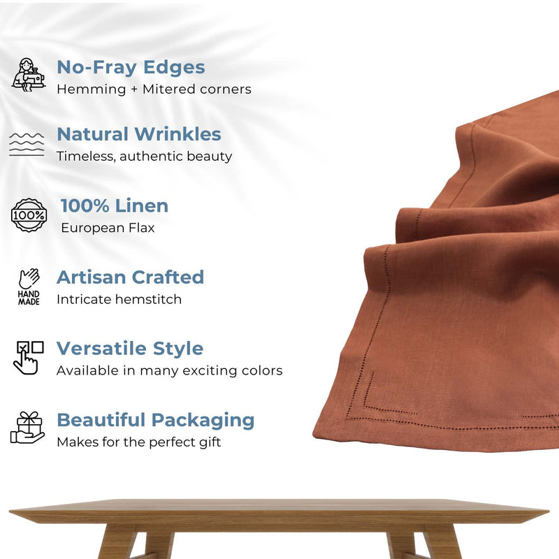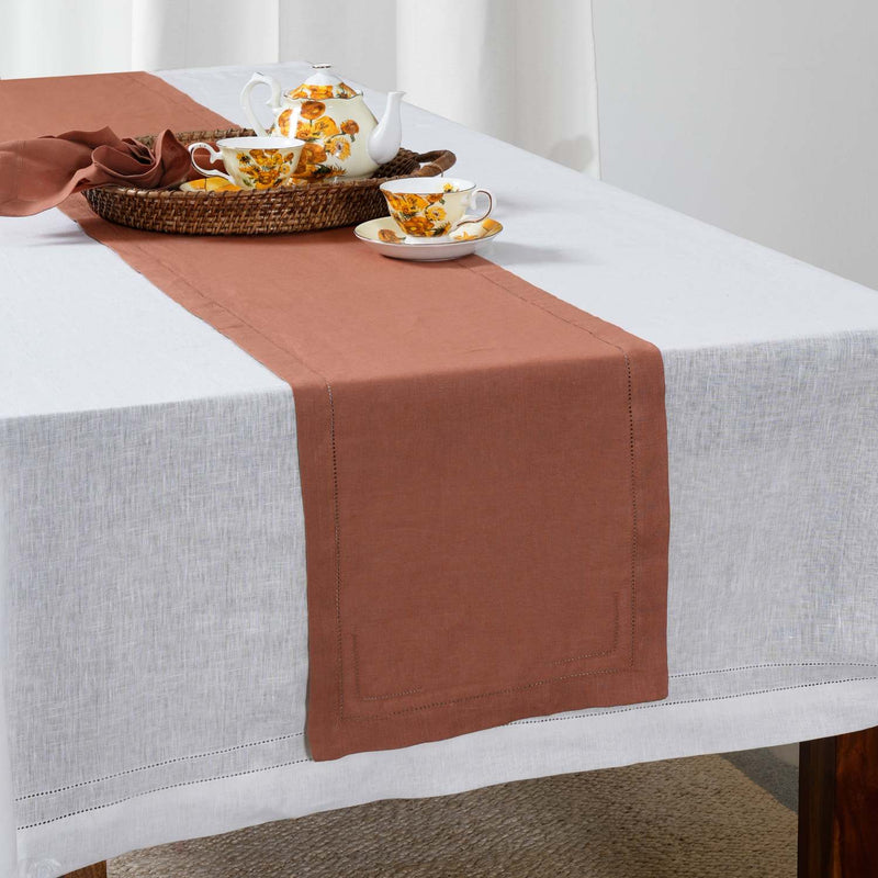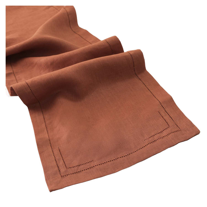 Rust 100% Linen Incomplete Hemstitch Table Runner 72"