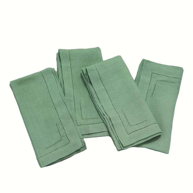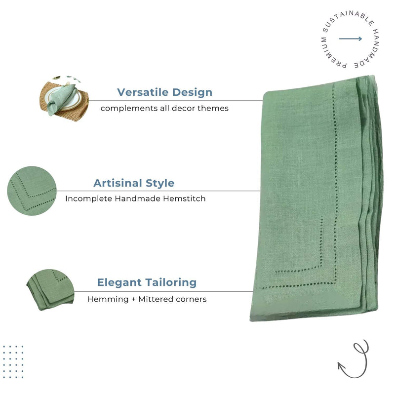 Sage Green 100% Linen Incomplete Hemstitch Napkins