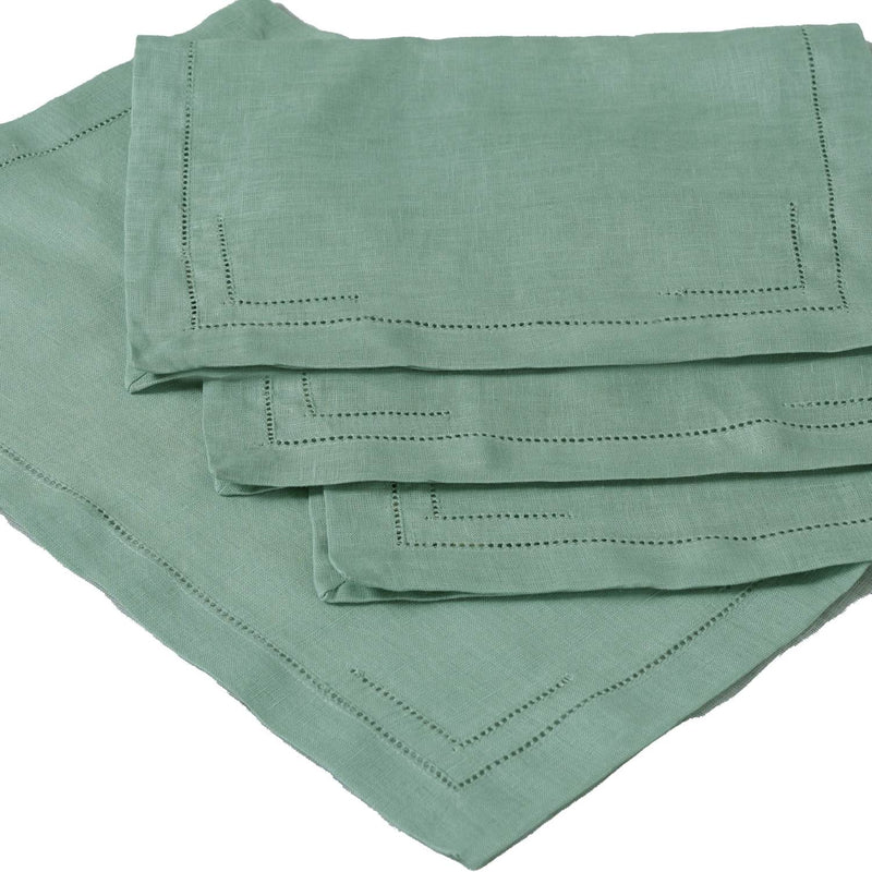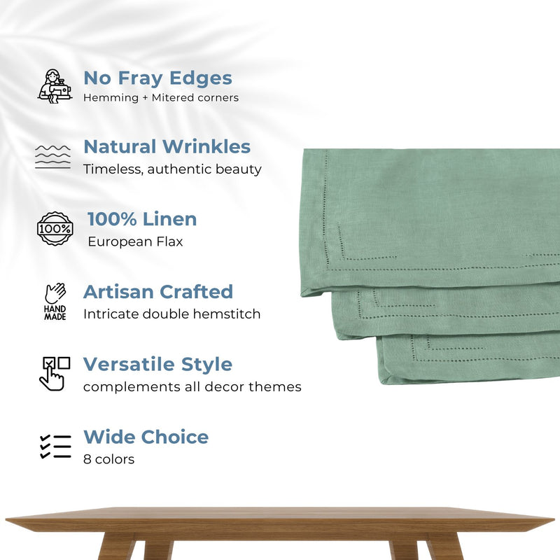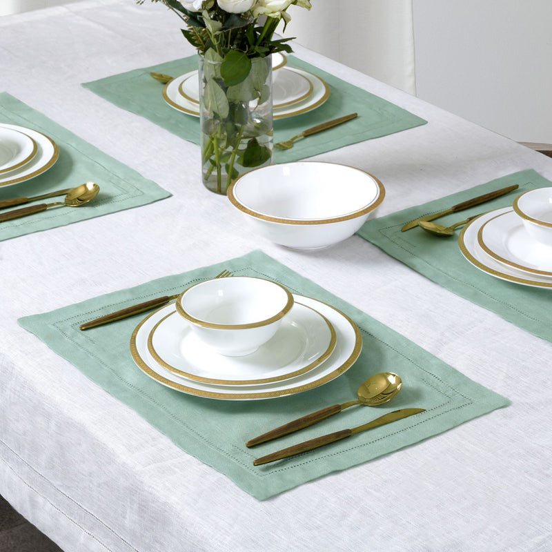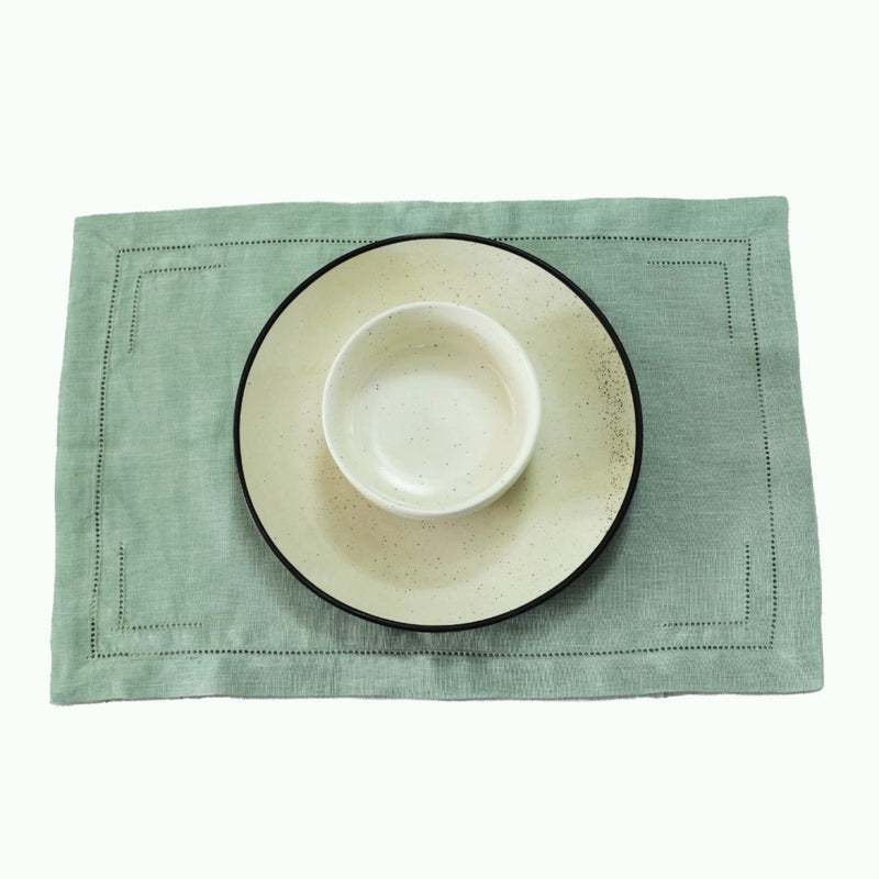 Sage Green 100% Linen Incomplete Hemstitch Placemats