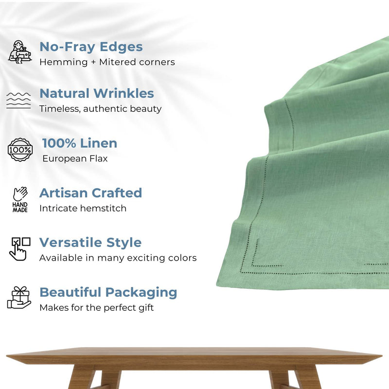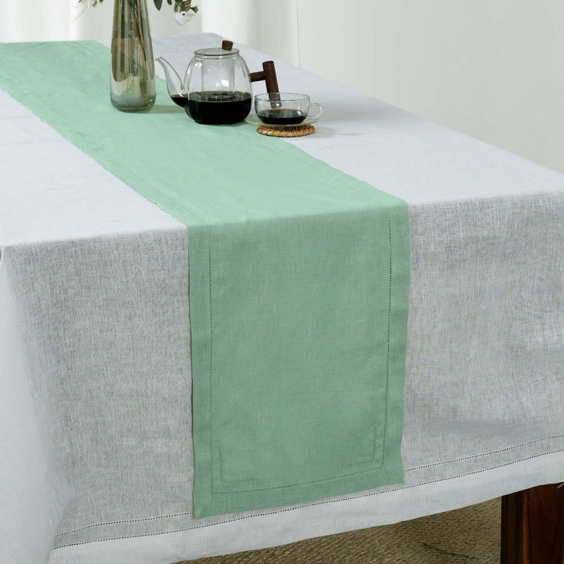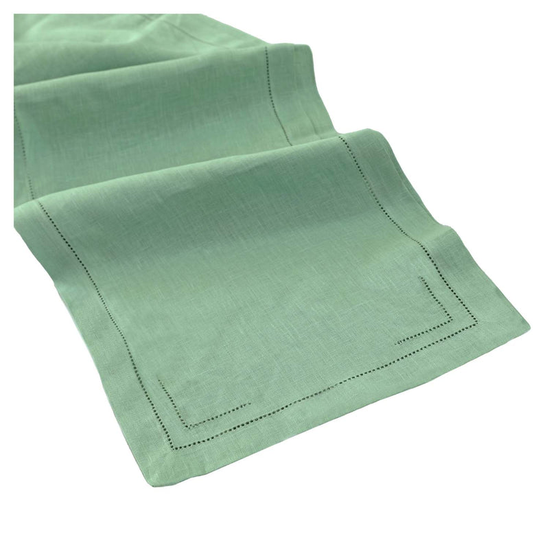 Sage Green 100% Linen Incomplete Hemstitch Table Runner 72"